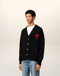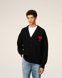 Cardigan in felted merino wool knit. Unisex product "ami" engraved horn buttons Intarsia knitted Ami de Coeur on the chest Inside out seams Jersey stitch 64 cm center back length (size M) 58 cm center back length (size XS) Made in Portugal (with love) REF: UKC367.018.009 SIZE & FIT This style is unisex. For man, take your normal size. For woman, take one size down than your usual size. Man model is 187 cm / 6"2 and is wearing a size M. Woman model is 181 cm / 5"11 and is wearing a size XS. COMPOSITION & CARE GUIDE Main Material : 100% Wool Hand wash low temperature Chlorine prohibited Do not tumble dry Dry flat Cool iron Dry clean possible Contains non-textile parts of animal origin