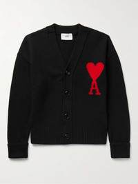 AMI PARIS' cardigan is made from soft virgin wool and has a relaxed shape that makes it feel extra cosy. It's intarsia-knitted with the brand's recognisable 'Ami de Cœur' motif. Size & Fit - Fits true to size. Take your normal size - This cardigan is designed for a relaxed cut - Dropped shoulder seam - Mid-weight knit - Model wears a M - Model measures: chest 38"/ 96cm, height 6'1"/ 185cm Details & Care - Black and red virgin wool - Button fastenings - 100% virgin wool; buttons: 100% horn (Buffalo) - Hand wash - This item has been imported