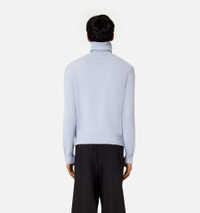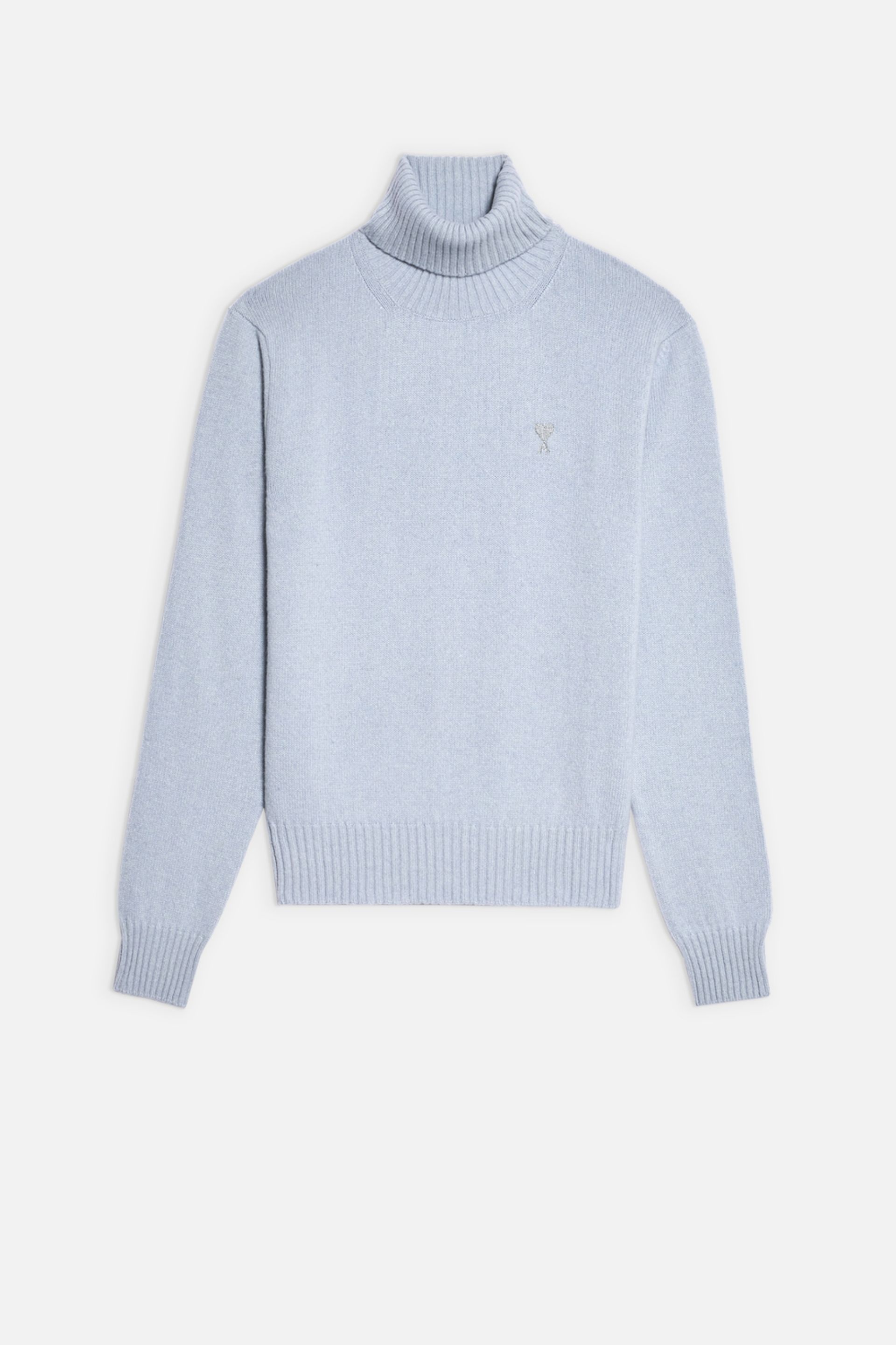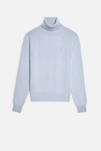 Product Description Light blue cashmere Ami de Coeur cashmere jumper from AMI Paris featuring signature Ami de Coeur monogram motif, roll neck, long sleeves and ribbed hem.