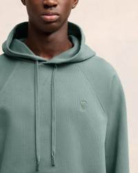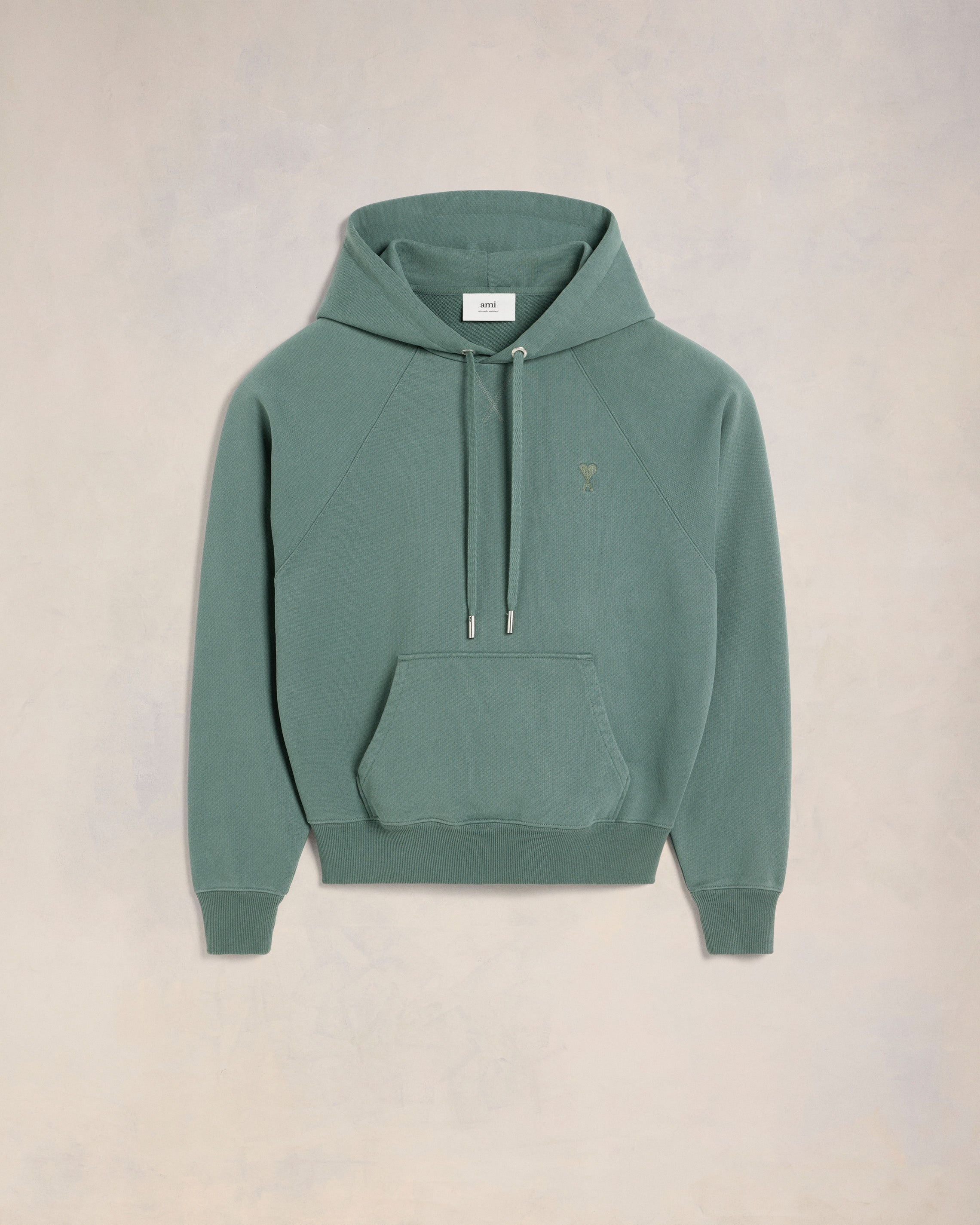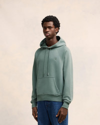 Hoodie in heavy loopback organic cotton fleece. Boxy fit Unisex product 61 cm center back length (Size XS) 65 cm center back length (Size M) Tonal Ami de Coeur chest embroidery Tonal "AMI" embroidery on the back Raglan sleeves Nickel color metal ends and "ami" engraved eyelets Garment dye style with a wash effect Made in Portugal (with love) REF : USW240.JE0091.4013 SIZE & FIT This style is unisex. For man, take your normal size. For woman, take one size down than your usual size. Man model is 1m89 / 6'2" and is wearing a size M. Woman model is 1m78 / 5'10" and is wearing a size XS. COMPOSITION & CARE GUIDE 100% Cotton Chlorine prohibited Machine wash at 30°C gentle Cool iron Do not dry clean Do not tumble dry