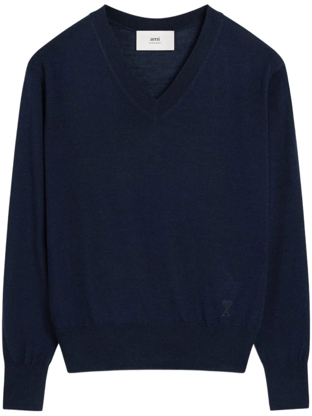 Ami de Coeur-embroidered sweater Highlights - Navy blue - V-neck - Ribbed cuffs and hem Made in Italy Composition Wool 75%, Silk 25%