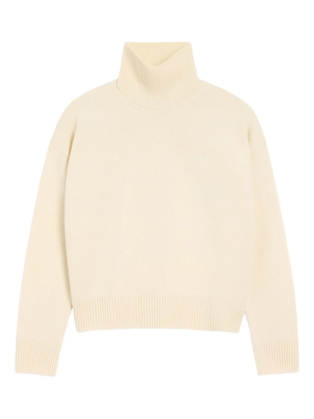 Ami De Coeur funnel-neck wool sweater Highlights - Beige - Funnel neck - Long sleeves - Ribbed cuffs and hem Made in Italy Composition Wool 90%, Cashmere 10% Washing instructions Read Manufacturer Guidelines