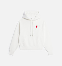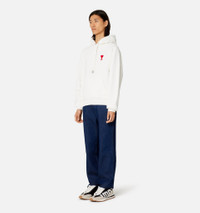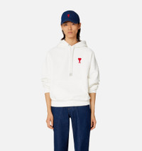 Product Description Ami De Coeur long-sleeve hoodie from AMI Paris featuring white, organic cotton-recycled polyester blend, jersey knit, ribbed trim, signature Ami de Coeur monogram motif, embroidered logo at the chest, slouchy drawstring hood, long raglan sleeves, straight hem and front pouch pocket. Conscious: This item is made from at least 50% recycled or upcycled materials. For recycled synthetic clothing products we highly recommend using a microfibre-catching washing bag to ensure that no microplastics that can pollute water are released in the process.. Hoodie in heavy loopback organic cotton fleece. - Boxy fit - Unisex product - 64 cm middle back length (M size) - 57 cm middle back length (XS size) - Red Ami de Cœur embroidery on classic colors - Tonal Ami de Cœur embroidery on seasonal colors - Tonal Ami embroidery under the back collar - Raglan sleeves - Nickel color metal ends and Ami engraved eyelets - GOTS certified product - Made in Portugal (with love) REF USW204.747175 Size & Fit This style is unisex. For man, take your normal size. For woman, take one size down than your usual size. Materials & Care Instructions 100% Cotton Machine wash at 30°C gentle Do not bleach Do not tumble dry Cool iron Do not dry clean Reshape whilst damp Wash inside out Iron inside out Wash with similar colours