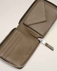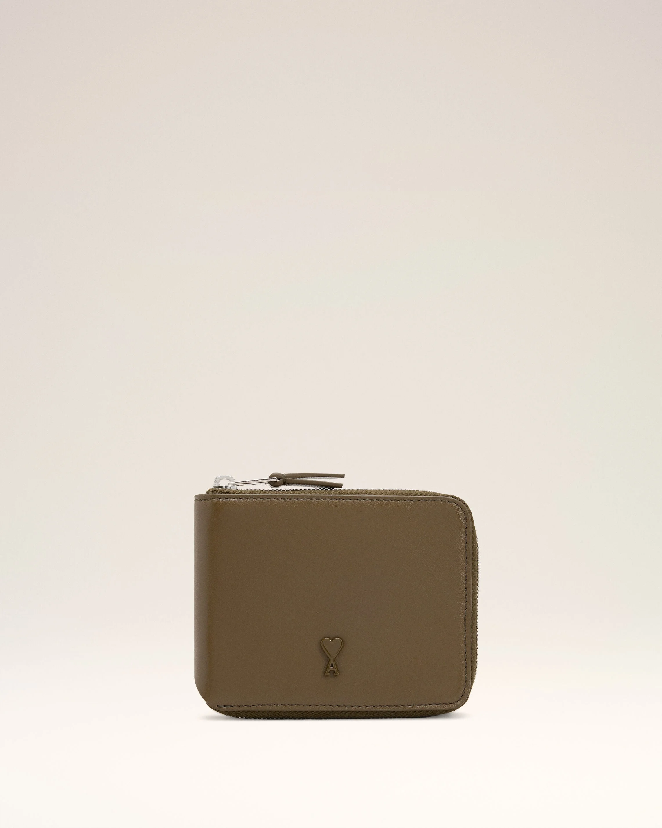 Zipped compact wallet in smooth leather. Unisex product Cow leather Snap button fastening Metal hardware in vibrated silver color One coin pocket Three card compartments and one note pocket Cotton canvas lining Tonal Ami de Coeur stud Size: 11 x 9 x 2 cm Made in Morocco (with love) REF: USL704.AL0138.298 SIZE & FIT Size: 11 x 9 x 2 cm COMPOSITION & CARE GUIDE Main Material : 100% Cow Leather Main Lining : 100% Cotton Our leathergoods are made from delicate materials. To keep the original aspect of the leather as long as possible, please avoid contact with abrasive and oily substances. Make sure not to expose them at the direct light for too long and to wipe them with a soft and dry cloth when wet. To avoid deformations, insure to not overload them. Keep them in their dust bag and safe from humidity.