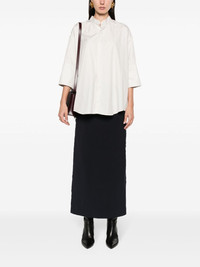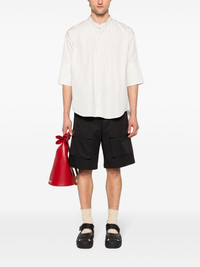 band-collar cotton shirt Highlights - Cool grey - Cotton - Poplin texture - Band collar - Concealed front button fastening - Short sleeves - Buttoned cuffs - Curved hem - When buying this unisex item, keep in mind that it is graded in standard men's sizing. Made in France Composition Cotton 100%