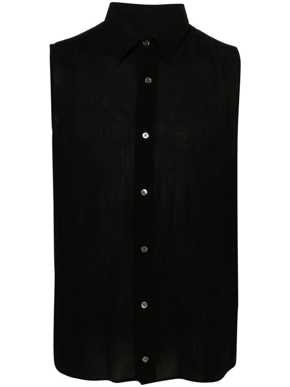 Ami-de-Coeur-motif shirt Highlights - Black - Georgette crepe - Semi-sheer construction - Crinkled finish - Signature ami de coeur monogram motif - Straight-point collar - Front button fastening - Sleeveless - Drop armholes - Curved hem - Unlined - When buying this unisex item, keep in mind that it is graded in standard men's sizing. Imported Composition Viscose 100% SIZE & FIT Model measurements Height 5 ft 10 in(1.77 m) Bust/Chest 29.92 in(76 cm) Hips 34.25 in(87 cm) Waist 23.62 in(60 cm) Measurement CHEST 35.43 in(90 cm) WAIST 32.28 in(82 cm) FittingInformation This piece is unisex – expect a slim fit if you usually select men's sizing; expect a looser fit if you usually select women's sizes Made from a lightweight non-stretch fabric Washing instructions Dry Clean Only