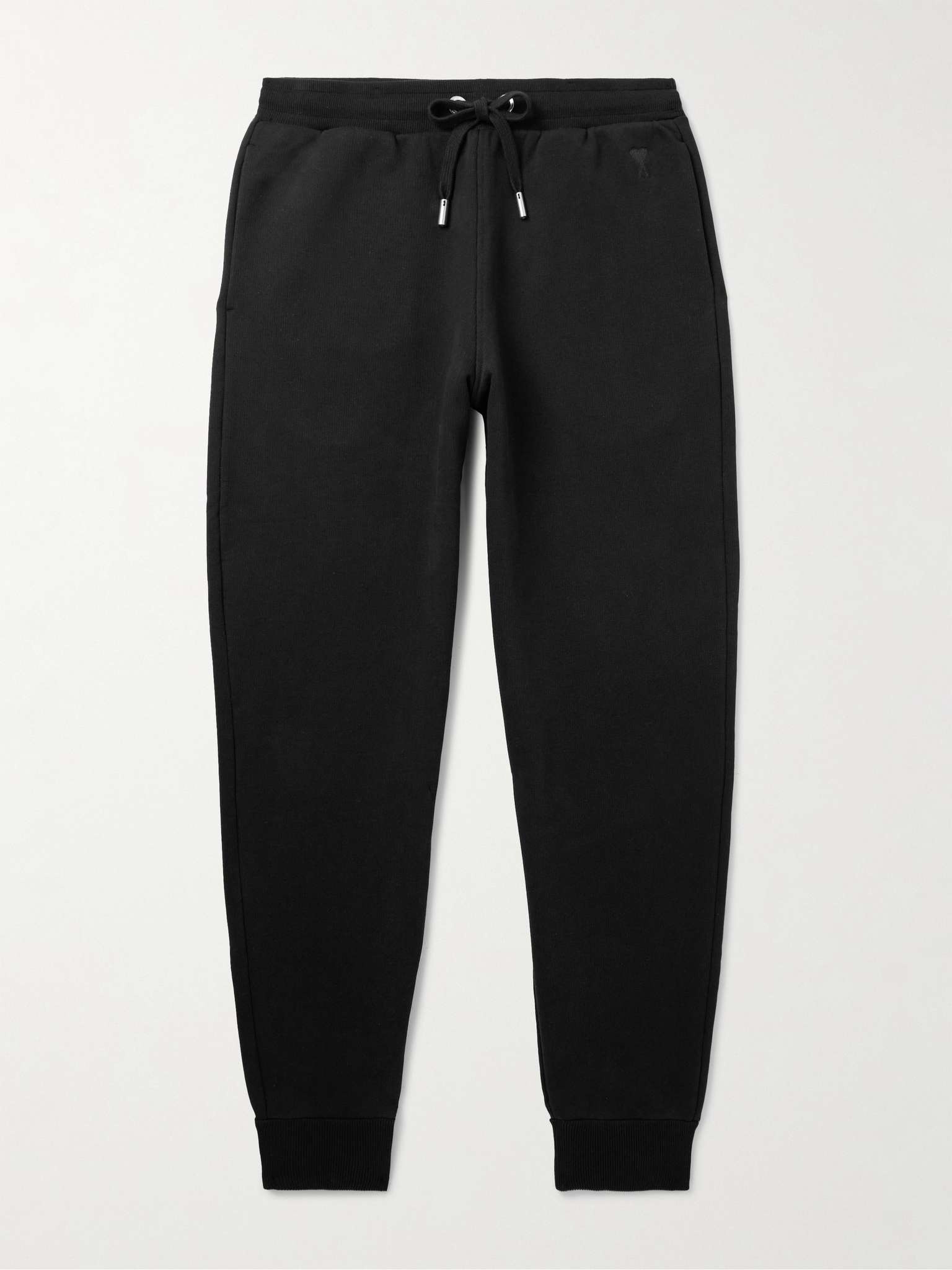 AMI PARIS’ sweatpants perfectly complement the brand's sweatshirts and hoodies. They're cut for a comfortable fit from organic cotton-jersey and have an elasticated waistband and cuffs. Lower Impact Materials. This product is made using at least 50% lower-impact materials or ingredients. Find out more about our Consciously Crafted criteria here. Size & Fit - Fits true to size. Take your normal size - Tapered leg, low-crotch style - Adjustable at the waist - Mid-weight, slightly stretchy fabric - Model is shown wearing a M - Model measures: waist size 32, height 6'0"/ 183cm Details & Care - Black organic cotton-jersey - 100% organic cotton - Machine wash