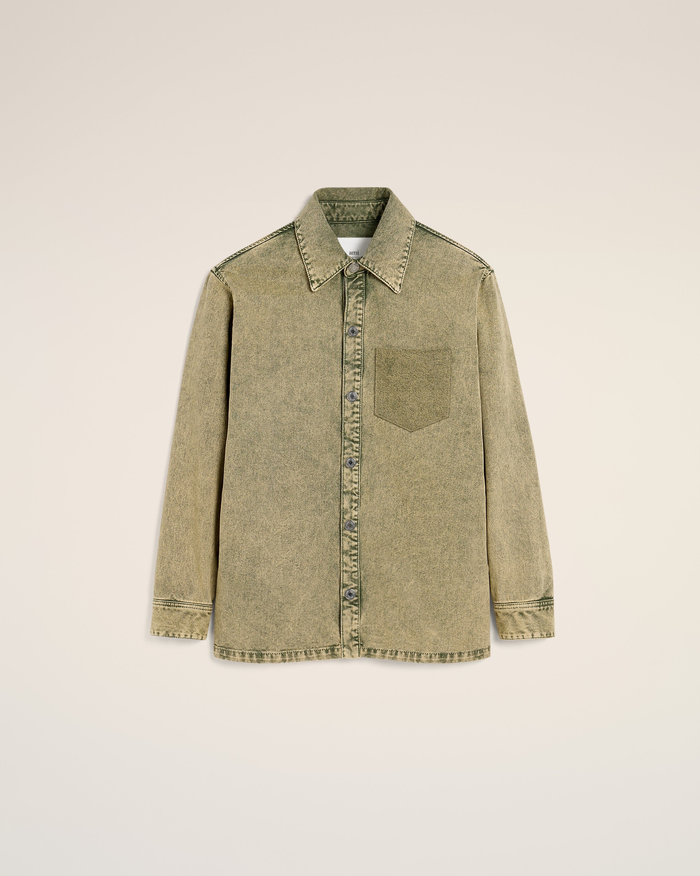 Overshirt in washed colored cotton twill. Oversize fit 77 cm center back length (size M) Embossed Ami de Coeur on chest pocket Denim snap buttons in nickel color Tonal topstitches Made in Tunisia (with love) REF: HJK273.DE0064.375 SIZE & FIT This item is designed to be worn lose. Take your normal size. Model is 1m87 / 6'2" and is wearing a size M. COMPOSITION & CARE GUIDE 100% Cotton Machine wash at 30°C Chlorine prohibited Do not tumble dry Cool iron Dry clean possible Wash inside out Wash with similar colours