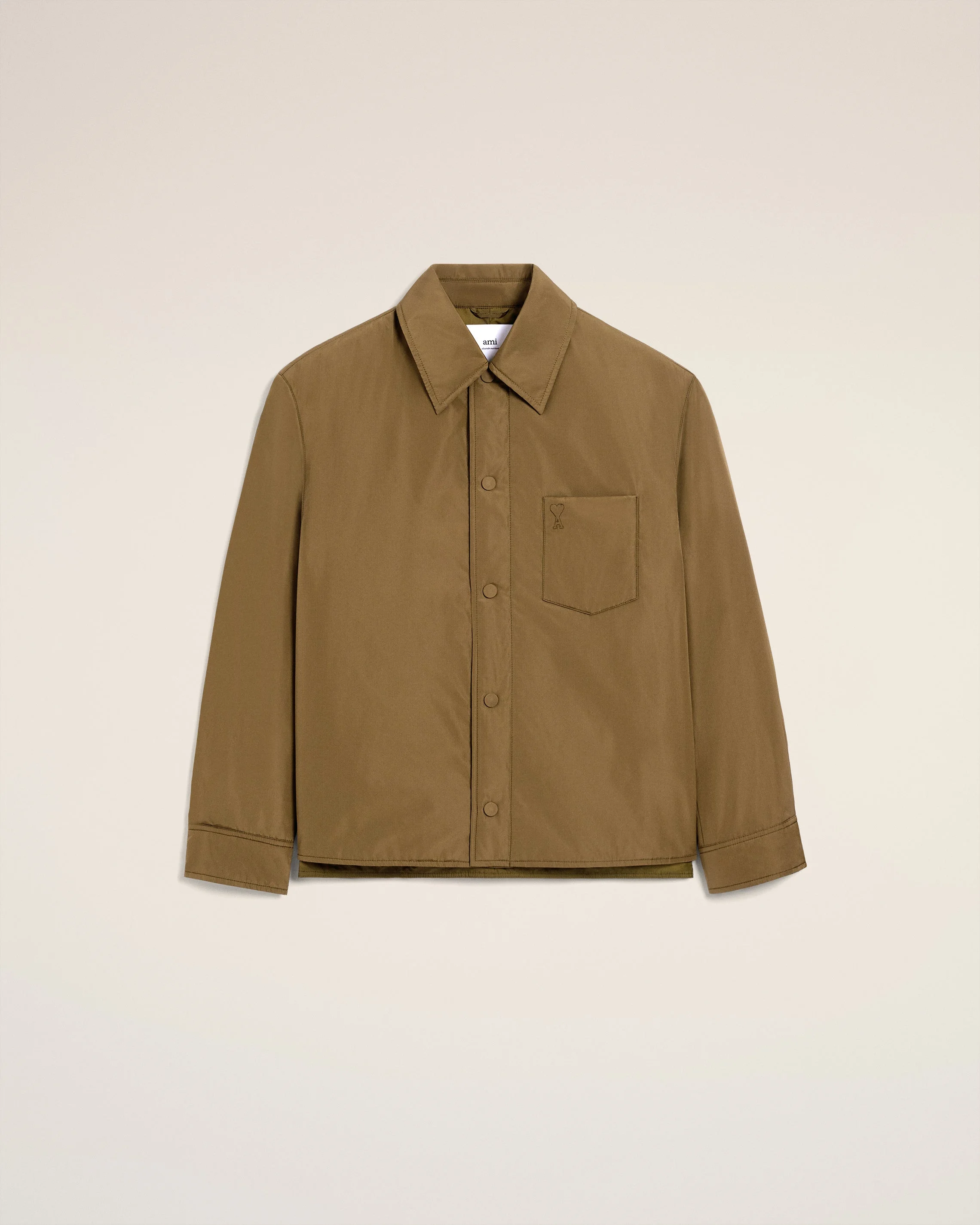 Padded overshirt in technical taffetas. Front closure and cuffs with covered snap buttons in main fabric Patch pocket on the chest Fully lined and padded Embossed and topstitched Ami de Coeur on the chest pocket Water repellent fabric 73 cm center back lenght (size M) Made in Romania (with love) REF: HJK829.PL0039.298 SIZE & FIT Fits true to size. Take your normal size. Model is 185 cm / 6"1 and is wearing a size M. COMPOSITION & CARE GUIDE Main Material : 100% Polyester Body Lining : 100% Polyamide Padding : 100% Polyester Do not wash Chlorine prohibited Do not tumble dry Cool iron Dry clean gentle