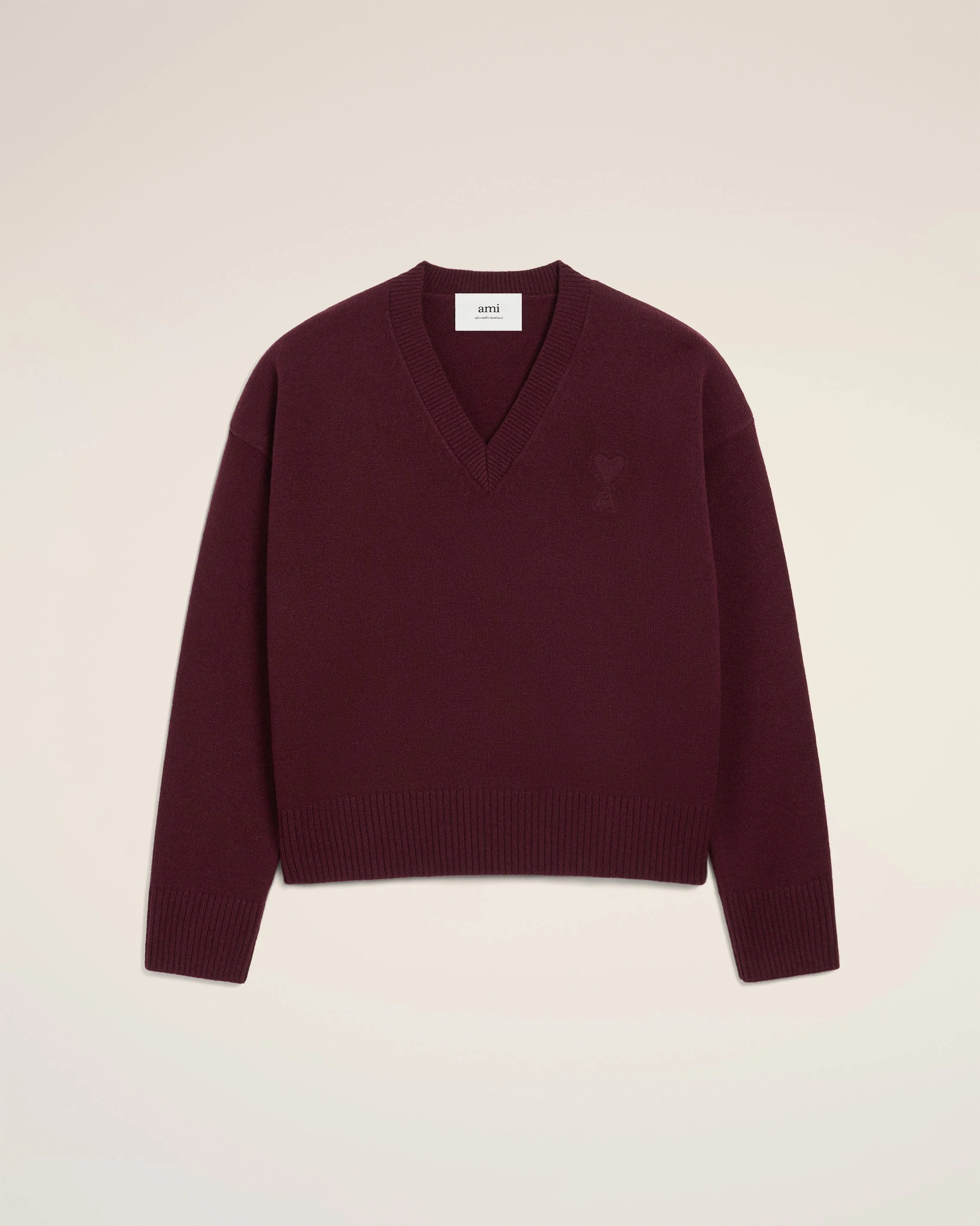 BURGUNDY WOOL AMI DE COEUR V NECK SWEATER