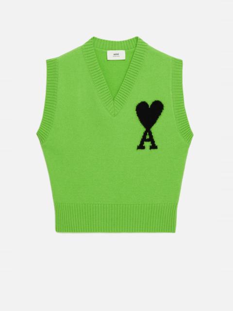 Product Description logo-intarsia knit vest from AMI Paris featuring white, virgin wool, signature Ami de Coeur monogram motif, intarsia-knit logo, V-neck, sleeveless, straight hem and ribbed trim. Sweater in felted merino wool. - V-neck - Sleeveless - Oversized fit - Jersey stitch - Red intarsia knitted Ami de Cœur - 67 cm middle back length (size M) - 60 cm middle back length (size XS) - RWS certified product REF UKS702.018154 Size & Fit This style is unisex and it's design to be worn oversize. For man, take your normal size. For woman, take one size down than your usual size. Materials & Care Instructions Hand wash low temperature Do not bleach Do not tumble dry Hang dry after removing excess water Cool iron Dry clean possible