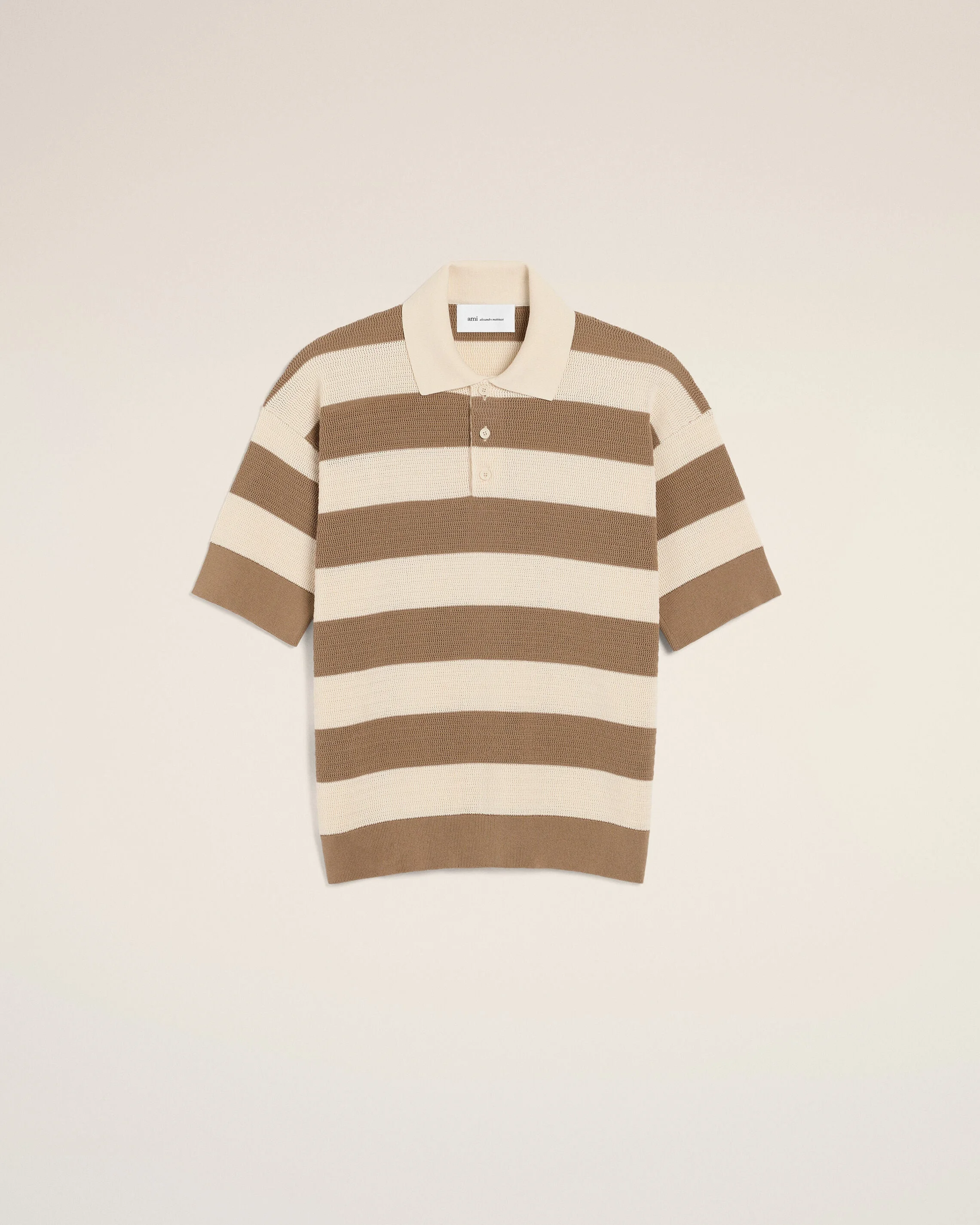 Polo in ajoure stripped cotton knit. Shirt collar Short sleeves Ajoure stitch Ami galalithe buttons Ami de Coeur crochet patch Made in Italy (with love) REF: HPL432.KN0153.A153 SIZE & FIT Fits true to size. Take your normal size. Man model is 187 cm / 6"1 and is wearing a size M. COMPOSITION & CARE GUIDE Main Material : 100% Cotton Hand Wash Low Temperature Chlorine Prohibited Do Not Tumble Dry Dry Flat Cool Iron Dry Clean Possible Contains Non-Textile Parts Of Animal Origin
