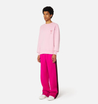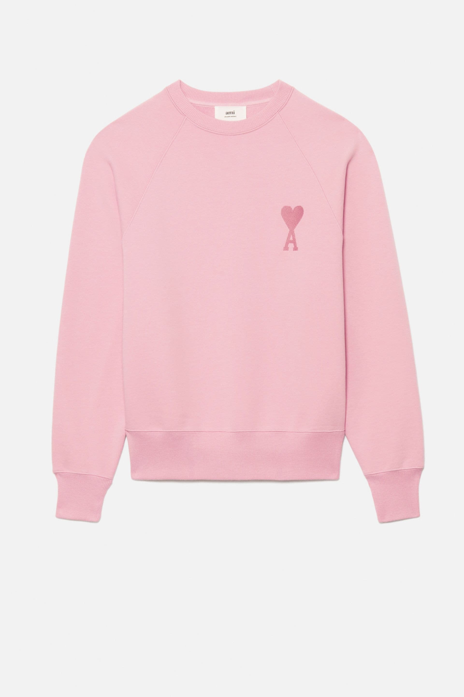 Product Description Pale rose pink organic cotton Ami de Coeur sweatshirt from AMI Paris featuring crew neck, signature Ami de Coeur monogram motif, long raglan sleeves, ribbed cuffs and ribbed hem. When buying this unisex item, keep in mind that it is graded in standard men's sizing.. POSITIVELY CONSCIOUS: This Planet Conscious product is made from at least 50% organic materials, which helps you support organic farming practices such as the restricted use of synthetic chemicals and genetically modified seeds, improved soil fertility and better livestock management.. Sweatshirt in heavy loopback organic cotton fleece. - Boxy fit - Unisex product - 67 cm center back length (M size) - 57 cm center back length (XS size) - Tonal Ami de Coeur chest embroidery - Tonal AMI embroidery under back cut - Front raglan sleeves - Kimono armholes construction at the back - GOTS certified product Main fabric: 100% Organic cotton REF USW002.747655 Size & Fit This style is unisex and designed to be worn oversize. For man, take your normal size. For woman, take one size down than your usual size. Model wears size M. Chest: 79cm/31.1” Hip: 84cm/33” Waist: 66cm/25.9” Shoe: 45 UE Height: 1.88m / 6’2" Model wears size S. Chest: 80cm/31.4” Hip: 91cm/35.8” Waist: 63cm/24.8” Shoe: 40 UE Height: 1.79m / 5'10" Materials & Care Instructions Machine wash at 30°C gentle Do not bleach Do not tumble dry Cool iron Do not dry clean Reshape whilst damp Wash inside out Wash with similar colours