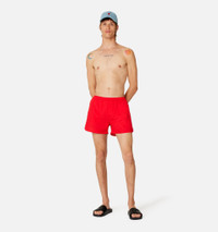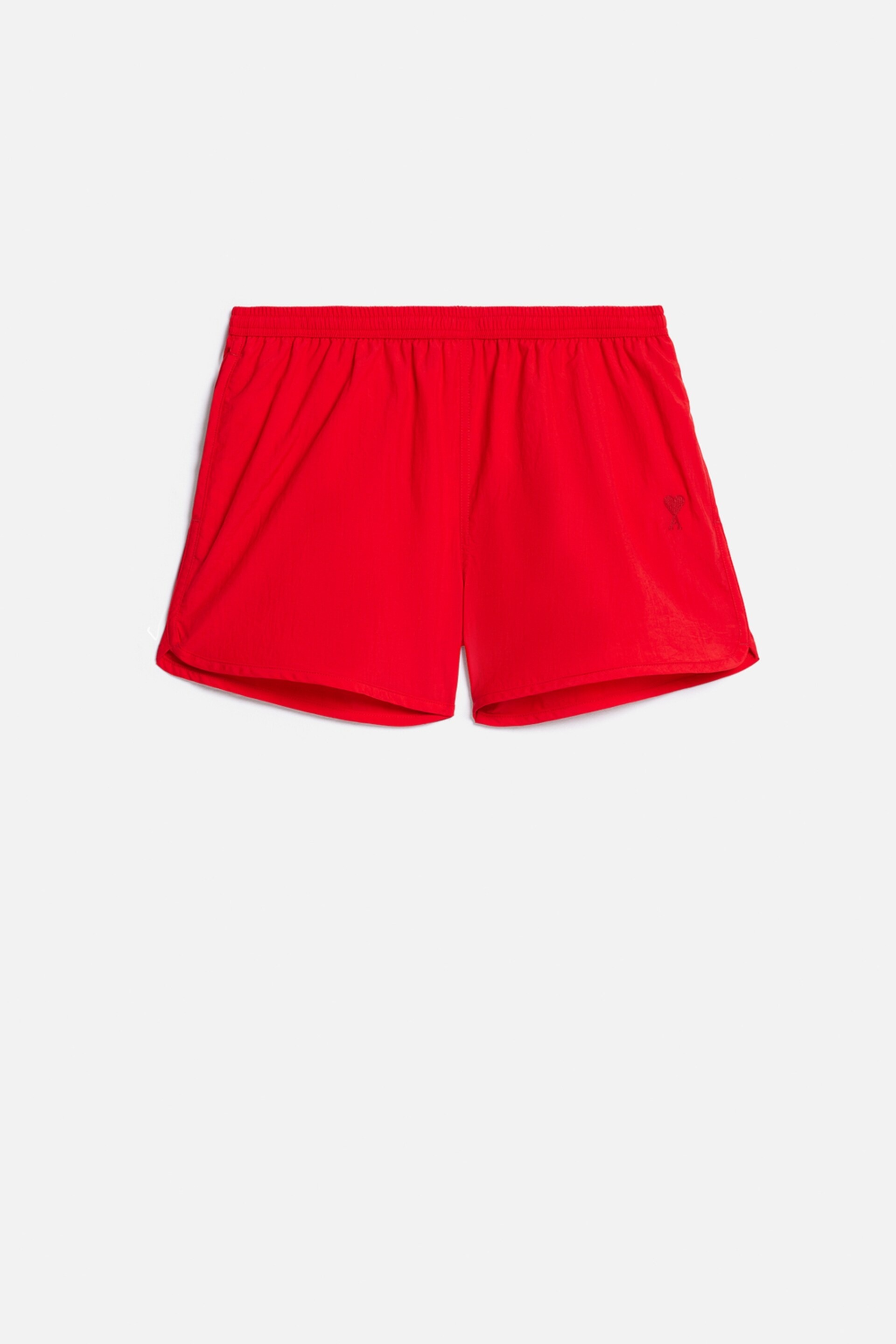 Product Description logo-embroidered swim shorts from AMI Paris featuring bright red, embroidered logo to the side, elasticated waistband, thigh-length and rear welt pocket. Be mindful to try on swimwear over your own garments.. Swim shorts in recycled nylon canvas. - Mesh lining - Side pockets - Back zipped pocket - Internal waist drawstring - Red Ami de Coeur embroidery - Made in Portugal (with love) REF HBW001.PA0004681 Size & Fit Fits true to size. Take your normal size. Materials & Care Instructions Main Fabric: 100% Polyamide Body Lining: 100 % Polyester Machine wash at 30°C Do not bleach Do not tumble dry Cool iron Dry clean possible Reshape whilst damp Wash with similar colours