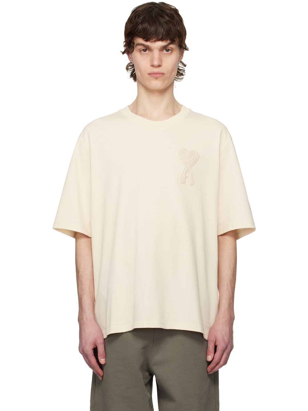 Boxy-fit organic cotton jersey T-shirt. - Rib-knit crewneck - Embroidered logo applique at chest - Logo embroidered at back collar Supplier color: White cream
