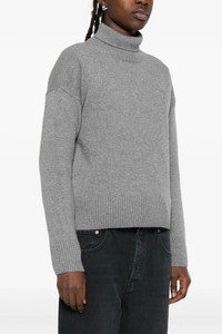 cod. UKS821KN0071050 Wool and cshmere sweater, tone-on-tone puff logo detail on the front, high neck, dropped shoulder, long cuffed sleeves. Color: Gray Size & Fit: True to size fit Composition: 90% wool, 10% cashmere Made in: Italy