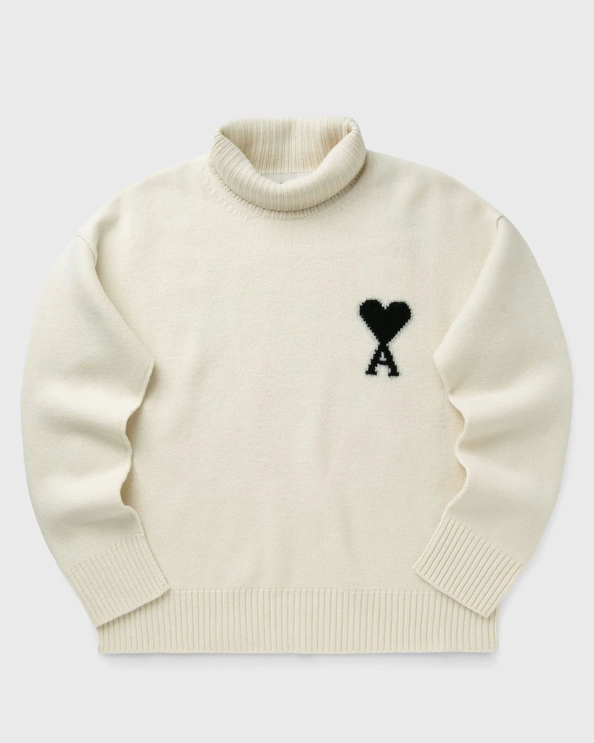The AMI Paris ADC Funnel Neck Sweater is a minimalist turtleneck sweater made from high-quality wool. It is characterized by a loose cut, a high collar and a characteristic Ami de Cœur embroidery on the chest. - Turtleneck - Relaxed fit - Ami de Cœur logo Article Number: UKS839.018-151 Gender: Men Color: ECRU/NOIR Material: 100% Linen