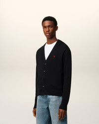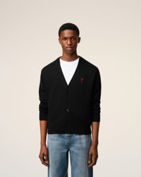 Cardigan in merino wool knit. "ami" engraved horn buttons Ami de Coeur chest embroidery Jersey stitch 63 cm center back length (size M) Made in Portugal (with love) REF: HKC361.001.009 SIZE & FIT Fits true to size. Take your normal size. Model is 185 cm / 6"1 and is wearing a size M. COMPOSITION & CARE GUIDE Main Material : 100% Wool Hand wash low temperature Chlorine prohibited Do not tumble dry Dry flat Cool iron Dry clean possible Contains non-textile parts of animal origin