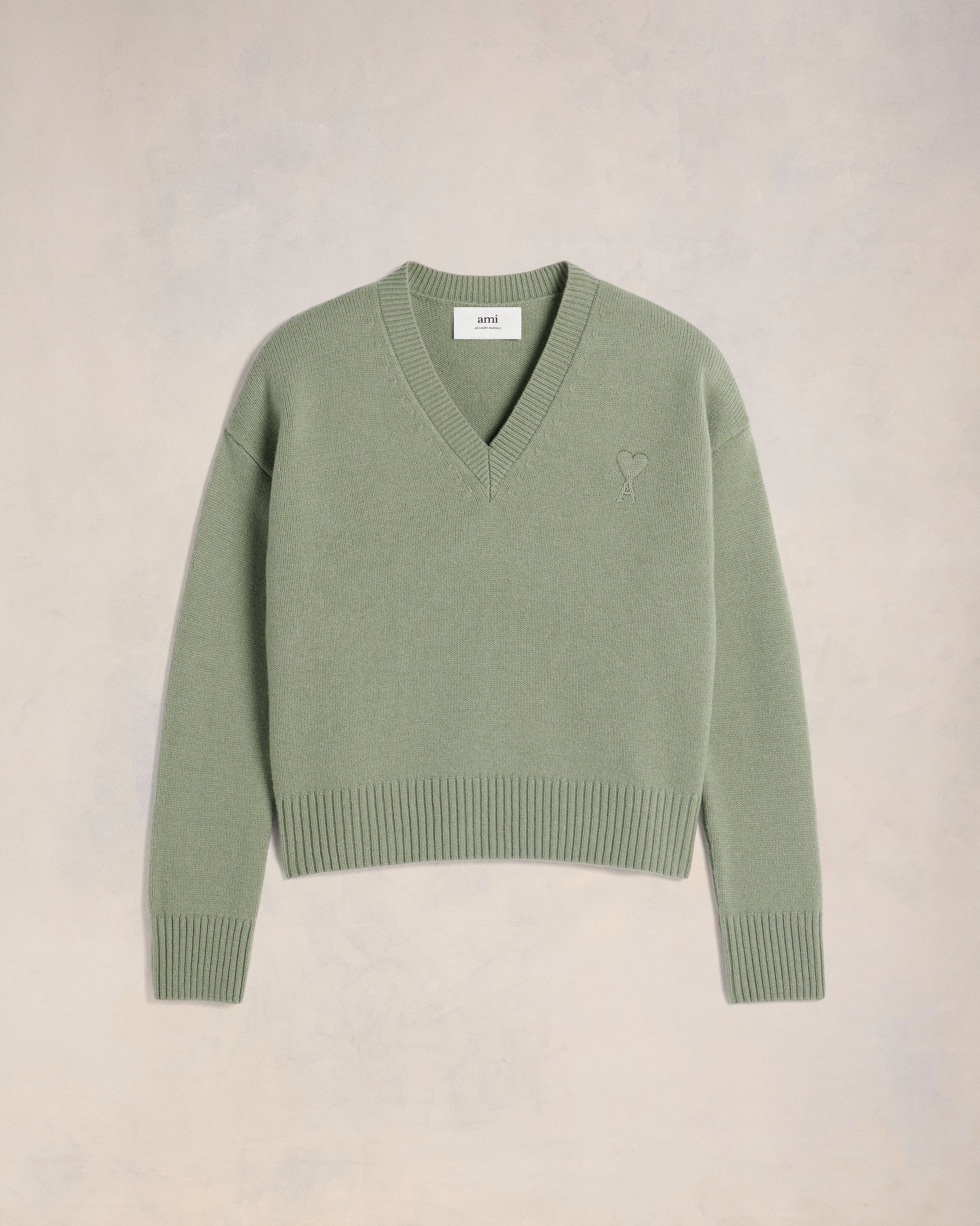 EMBOSSED AMI DE COEUR V NECK SWEATER