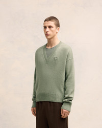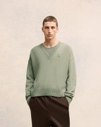 Sweater in wool and cashmere knit. Unisex product Jersey stitch Tonal Ami de Coeur embossed chest embroidery 60 cm center back length (size M) 54 cm center back length (size XS) Made in Italy (with love) REF : UKS244.KN0028.303 SIZE & FIT This style is unisex and it's design to be worn oversize. Take your normal size. Man model is 1m84 / 6'0" and is wearing a size M. Woman model is 1m76 / 5'9" and is wearing a size XS. COMPOSITION & CARE GUIDE 90% Wool, 10% Cashmere Hand wash low temperature Chlorine prohibited Do not tumble dry Dry flat Cool iron Dry clean gentle