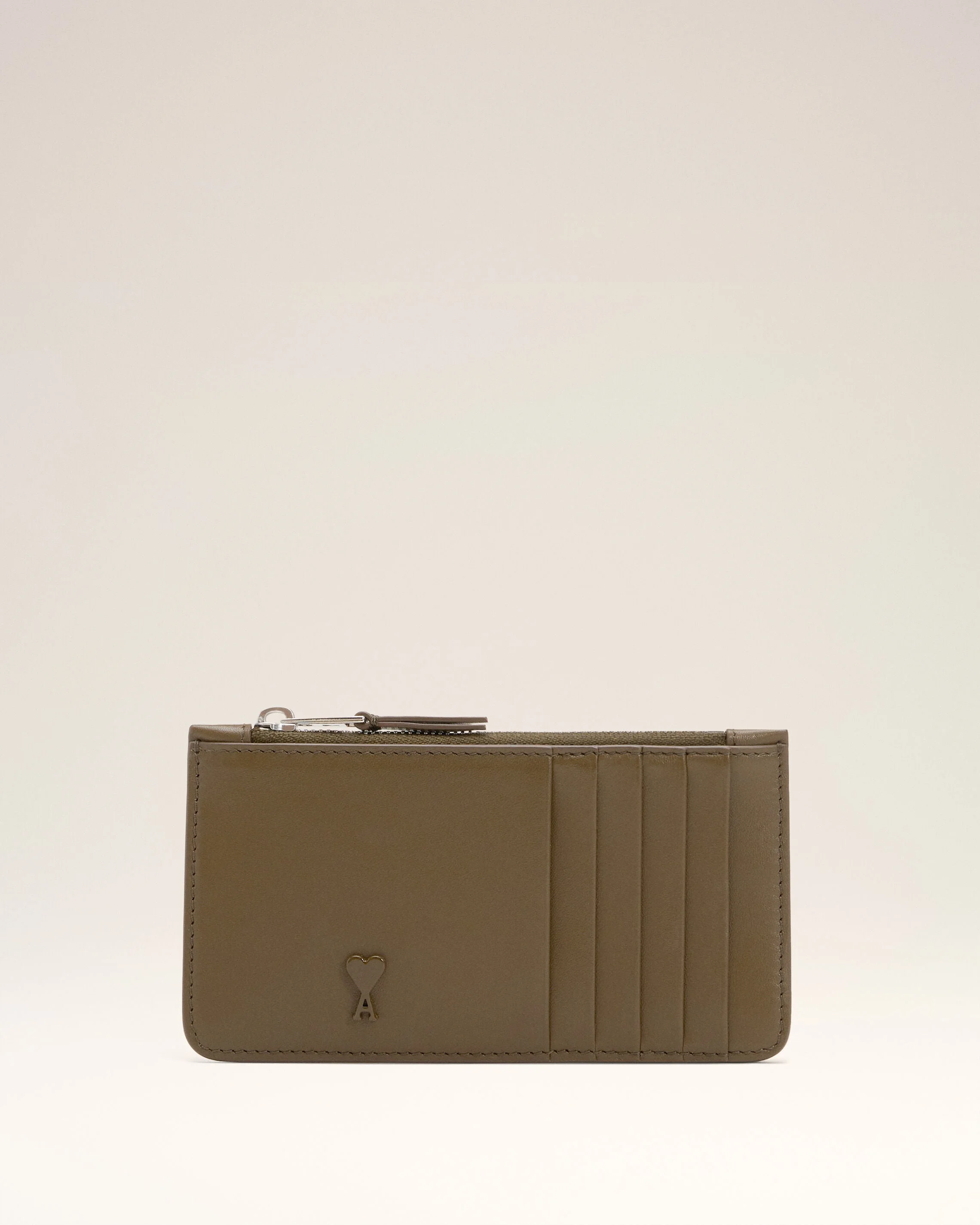 Zipped card holder in smooth leather. Unisex product Cow leather Metal hardware in vibrated silver color One zipped coin pocket Five card compartments and one patched pocket on the back face Cotton canvas lining Tonal Ami de Coeur stud Size: 14 x 7.5 cm Made in Morocco (with love) REF: USL703.AL0138.298 SIZE & FIT Size: 14 x 7.5 cm COMPOSITION & CARE GUIDE Main Material : 100% Cow Leather Main Lining : 100% Cotton Our leathergoods are made from delicate materials. To keep the original aspect of the leather as long as possible, please avoid contact with abrasive and oily substances. Make sure not to expose them at the direct light for too long and to wipe them with a soft and dry cloth when wet. To avoid deformations, insure to not overload them. Keep them in their dust bag and safe from humidity.
