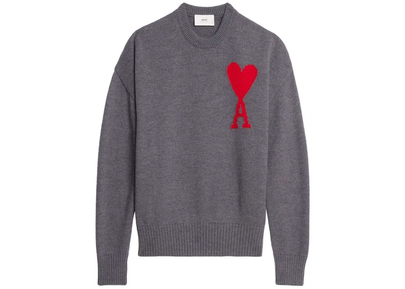 Ami Paris ADC Crewneck Sweater Heather Grey/Red
