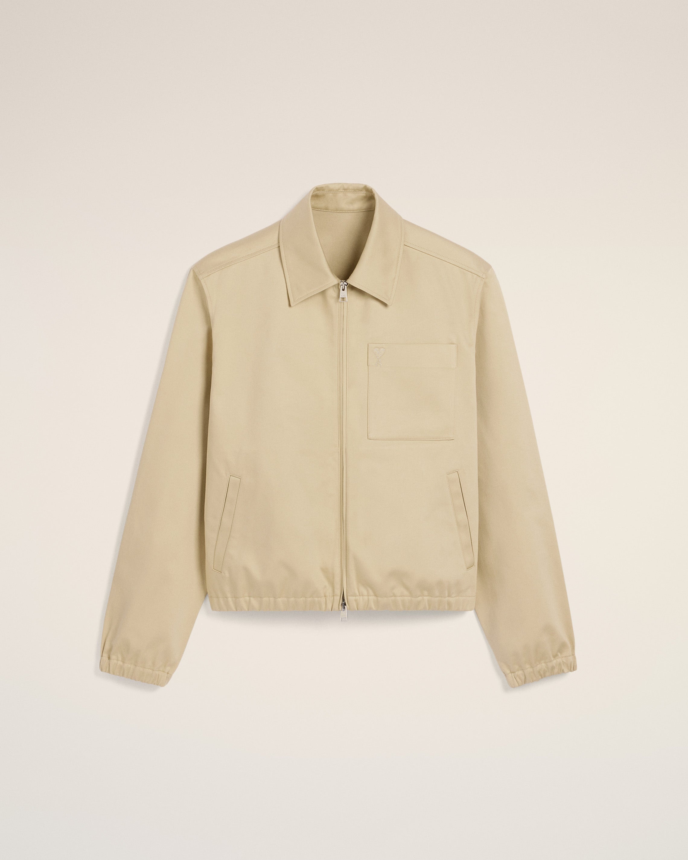 Zipped jacket in compact cotton satin. 63 cm center back length (size M) Nickel double metal zipper with "ami" engraved pullers Pockets with invisible snap buttons Elasticated cuffs and waist Patch pocket on the chest Tonal Ami de Coeur embroidery on the chest pocket Made in Romania (with love) REF: HJK059.CO0103.725 SIZE & FIT Fits true to size. Take your normal size. Model is 1m86 / 6'1" and is wearing a size M. COMPOSITION & CARE GUIDE 100% Cotton Do not wash Chlorine prohibited Do not tumble dry Cool iron Dry clean petroleum solvent only on a gentle process