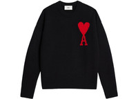Ami Paris Ami De Coeur Intarsia-knitted Felted Merino Wool Crewneck Oversized Sweater Black/Red
