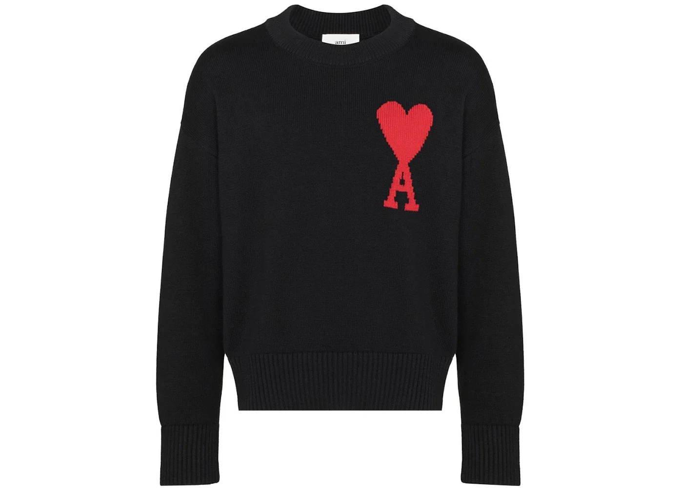 Ami Paris Ami De Coeur Intarsia Merino Wool Oversized Sweater Black