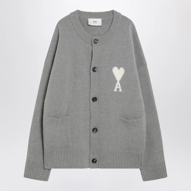 Ami Paris grey wool cardigan, featuring Ami De Coeur embroidery on the chest, long sleeves, front button placket, round neckline, two front pockets, ribbed cuffs and hem. Gender: Men Material: 50% Alpaca - 25% Wool - 23% Polyamide - 2% Elastane Color: GREY Made in: Portugal Product ID: UKC366UKN0135/R_AMI-058 *Import tax/duty will be calculated at checkout (If applicable)