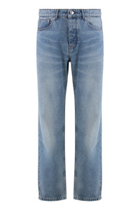 AMI PARIS' COTTON JEANS FEATURE A CLASSIC AND TIMELESS DESIGN. THE STRAIGHT FIVE-POCKET STYLE OFFERS A VERSATILE AND COMFORTABLE FIT, WHILE THE FRONT BUTTON CLOSURE ADDS A TRADITIONAL TOUCH. WAIST LOOPS ALLOW THEM TO BE PAIRED WITH A BELT, EMPHASIZING THE SILHOUETTE. ON THE BACK, THE ICONIC LEATHER PATCH WITH THE BRAND'S SIGNATURE PRESS-STAMPED PRINT ADDS A DISTINCTIVE AND REFINED DETAIL. BOTTOM Gender: Men Material: COTTON Color: BLUE Made in: PT Product ID: HTR001DE0046_480 *Import tax/duty will be calculated at checkout (If applicable)