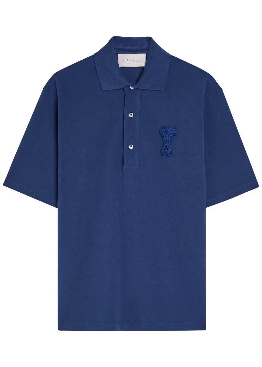 Ami Paris Logo-appliquéd Piqué Cotton Polo Shirt
