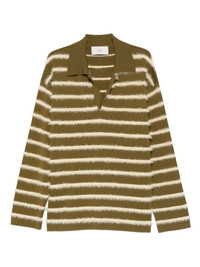 striped long-sleeve sweater Highlights - Olive green - Striped - Long sleeves - Polo collar - V-neck Imported Composition Merino 85%, Polyamide 15% SIZE & FIT Model measurements Height 6 ft 1 in(1.86 m) Bust/Chest 35.43 in(90 cm) Hips 35.03 in(89 cm) Waist 29.13 in(74 cm) Washing instructions Hand Wash