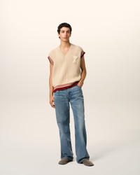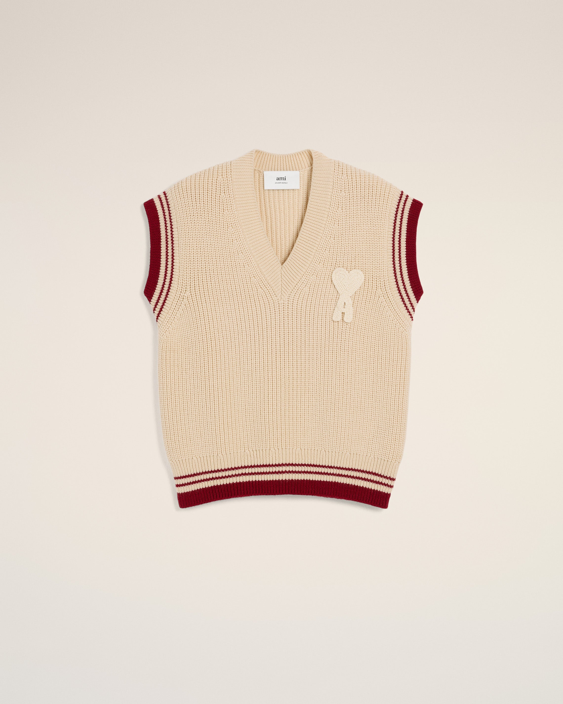 Sweater in college ribs wool. Unisex product Half english ribs stitch Ami de Coeur knitted patch embroidered on chest 63 cm center back length (size M) 59 cm center back length (size XS) Made in Portugal (with love) REF: UKS768.KN0068.136 SIZE & FIT This style is unisex and it's design to be worn oversize. Take your normal size. Man model is 1m89 / 6'2" and is wearing a size M. Woman model is 1m77 / 5'10" and is wearing a size XS. COMPOSITION & CARE GUIDE 100% New Wool Hand wash low temperature Chlorine prohibited Do not tumble dry Dry flat Cool iron Dry clean possible