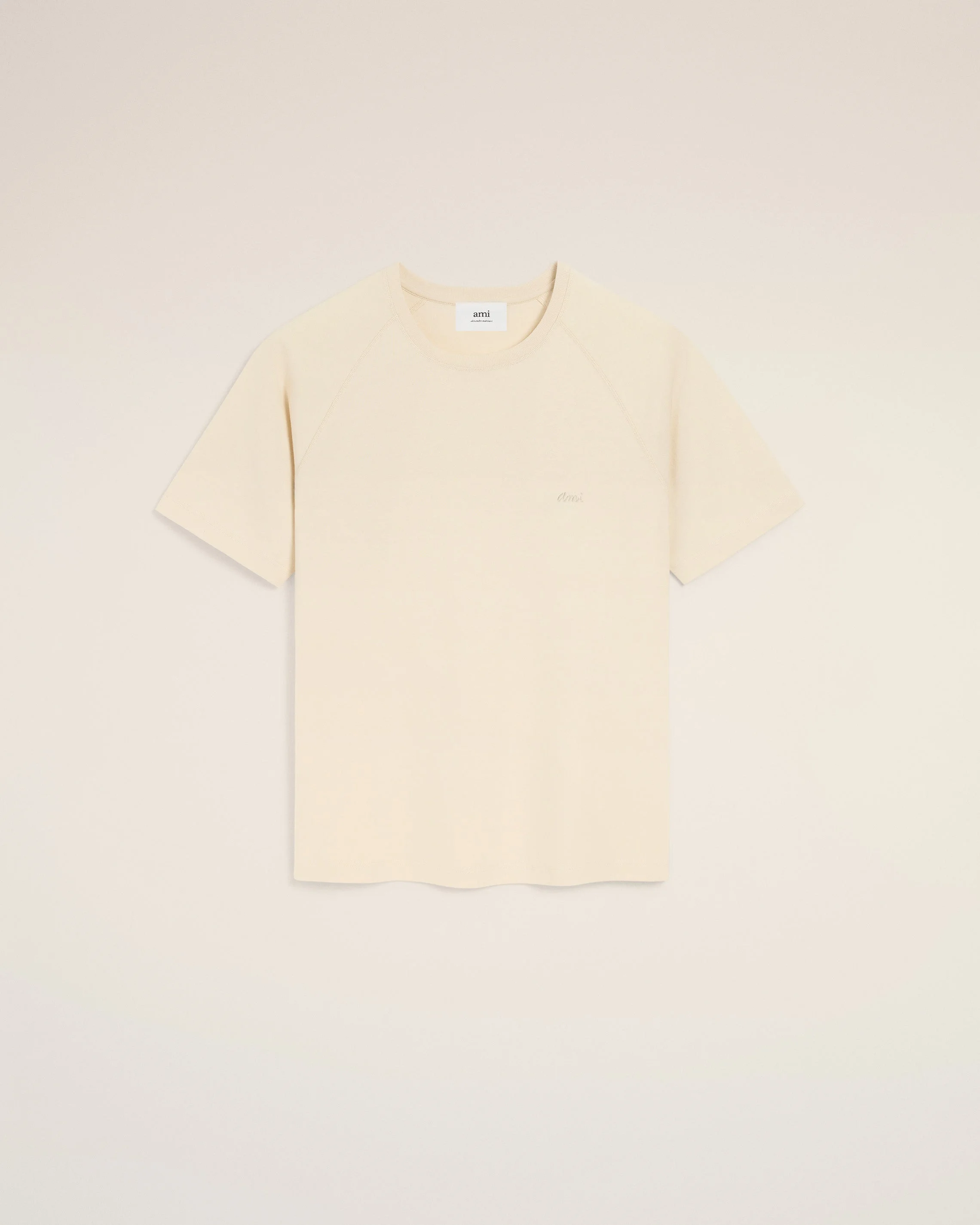 T-shirt in cotton jersey . Unisex product Relaxed fit Raglan sleeves Tonal italic "ami" chest embroidery Tonal "ami" embroidery under back neckline Flatlock finish below RIB on collar and raglans 64cm center back length (size XS) 68cm center back length (size M) Made in Bulgaria (with love) REF: UTS334.JE0172.185 SIZE & FIT This style is unisex. For man, take your normal size. For woman, take one size down than your usual size. Man model is 183 cm / 6"0 and is wearing a size M. Woman model is 179 cm / 5"10 and is wearing a size XS. COMPOSITION & CARE GUIDE Main Material : 100% Cotton Chlorine prohibited Machine wash at 30°c gentle Do not tumble dry Dry clean gentle Medium iron Line dry in shade