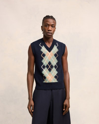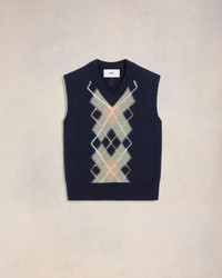 Sweater in wool and cashmere argyle. Jersey stitch Tonal Ami de Coeur embossed embroidery on the back under collar 60 cm center back length (size M) Made in Italy (with love) REF : HKS744.KN0057.4025 SIZE & FIT This item is designed for a close fit. Take your normal size. Model is 1m83 / 6'0" and is wearing a size M. COMPOSITION & CARE GUIDE 90% Wool, 10% Cashmere Hand wash low temperature Chlorine prohibited Do not tumble dry Dry flat Cool iron Dry clean gentle