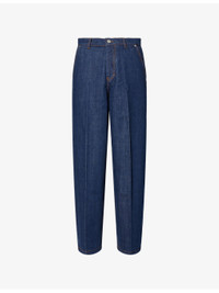 PRODUCT DETAILS - Ami Paris denim jeans - 100% cotton - Button and button-fly fastening - Relaxed fit, balloon wide-leg, five pockets, belt loops, pressed pleat, brand patch at back - Machine wash at 30°C - Made in Portugal - True to size - Size 30: rise 13in / 33cm, inside leg 32in / 81.2cm, leg opening 20in / 50.7cm - Model is 6ft 2in/1.88m and wears a size UK 30 - Midweight, non-stretch Ref: R04577051