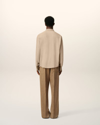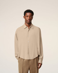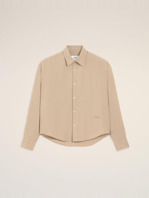 Plain viscose shirt. Unisex product Boxy fit Classic collar Buttoned placket on the front and cuffs Mother of pearl buttons Tonal italic "ami" embroidery on bottom left waist Center back length : 72,5cm (size XS) Center back length : 74,5cm (size M) Made in Portugal (with love) REF: USH767.VI0036.229 SIZE & FIT This style is unisex. For man, take your normal size. For woman, take one size down than your usual size. Man model is 185 cm / 6"1 and is wearing a size M. Woman model is 177 cm / 5"9 and is wearing a size S. COMPOSITION & CARE GUIDE Main Material : 100% Viscose Chlorine prohibited Do not tumble dry Cool iron Dry clean gentle Do not wash