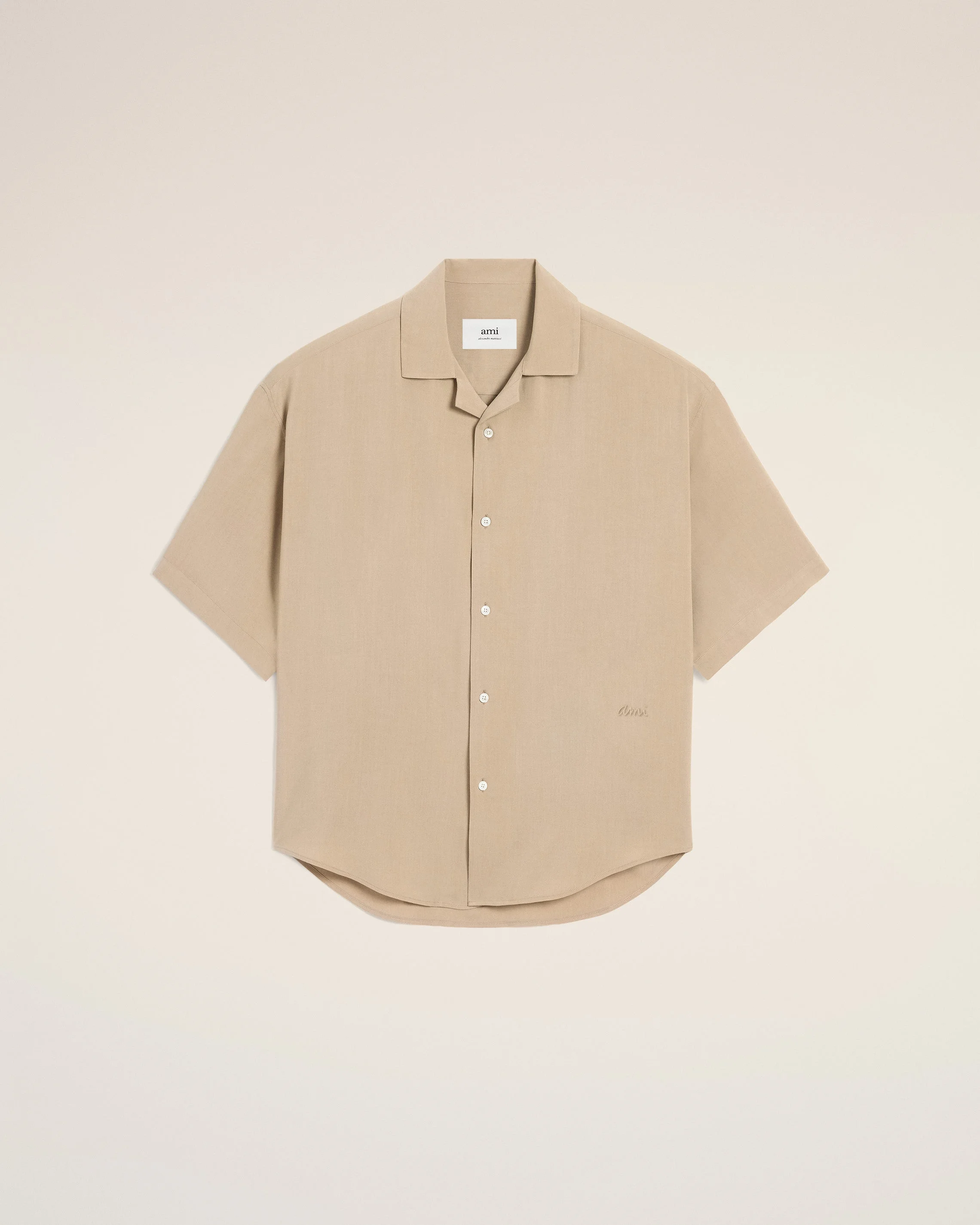 BEIGE AMI CAMP SHORT SLEEVED SHIRT