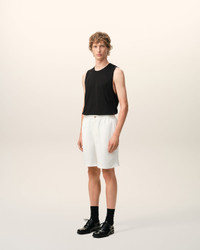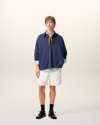 Elasticated waist shorts in viscose and linen gabardine. Classic fit Water repellent fabric Elasticated belt with button Internal waist drawstring Zipped fly Patch pocket on the back Embossed and topstiched Ami de Coeur on the back pocket Made in Romania (with love) REF: HSO835.VI0052.136 SIZE & FIT Fits true to size. Take your normal size. Man model is 189 cm / 6"2 and is wearing a size M. COMPOSITION & CARE GUIDE Main Material : 54% Viscose, 46% Linen Pocket Lining : 65% Polyester, 35% Cotton Do Not Wash Chlorine Prohibited Do Not Tumble Dry Cool Iron Dry Clean Gentle