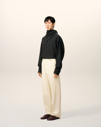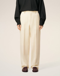 WHITE WOOL WIDE TROUSERS