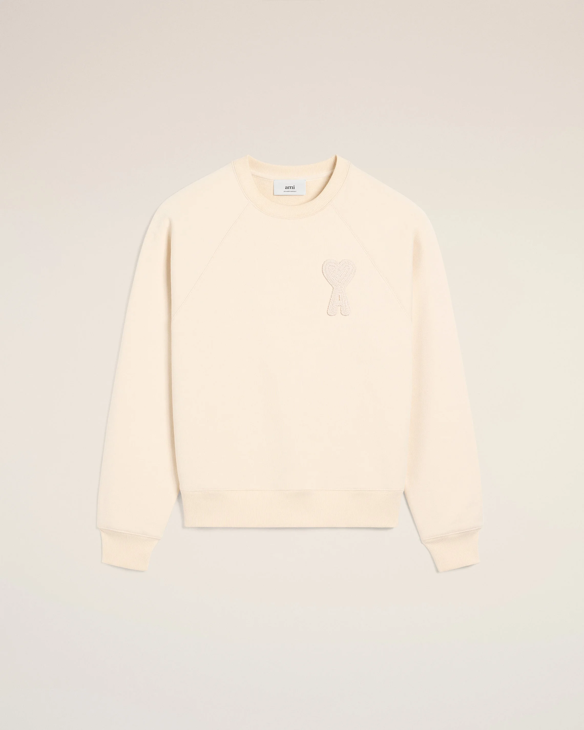 Ami de Coeur sweatshirt in heavy loopback organic cotton fleece. Boxy fit Unisex product 61 cm center back length (XS size) 65 cm center back length (M size) Tonal Ami de Coeur knitted patch Tonal "AMI" embroidery under back neckline Raglan sleeves Made in Portugal (with love) REF: USW055.747.136 SIZE & FIT This style is unisex. For man, take your normal size. For woman, take one size down than your usual size. Man model is 1m88 / 6'2" and is wearing a size M. Woman model is 1m78 / 5'10" and is wearing a size XS. COMPOSITION & CARE GUIDE 100% Organic Cotton Chlorine prohibited Machine wash at 30°C gentle Do not dry clean Do not tumble dry Cool iron