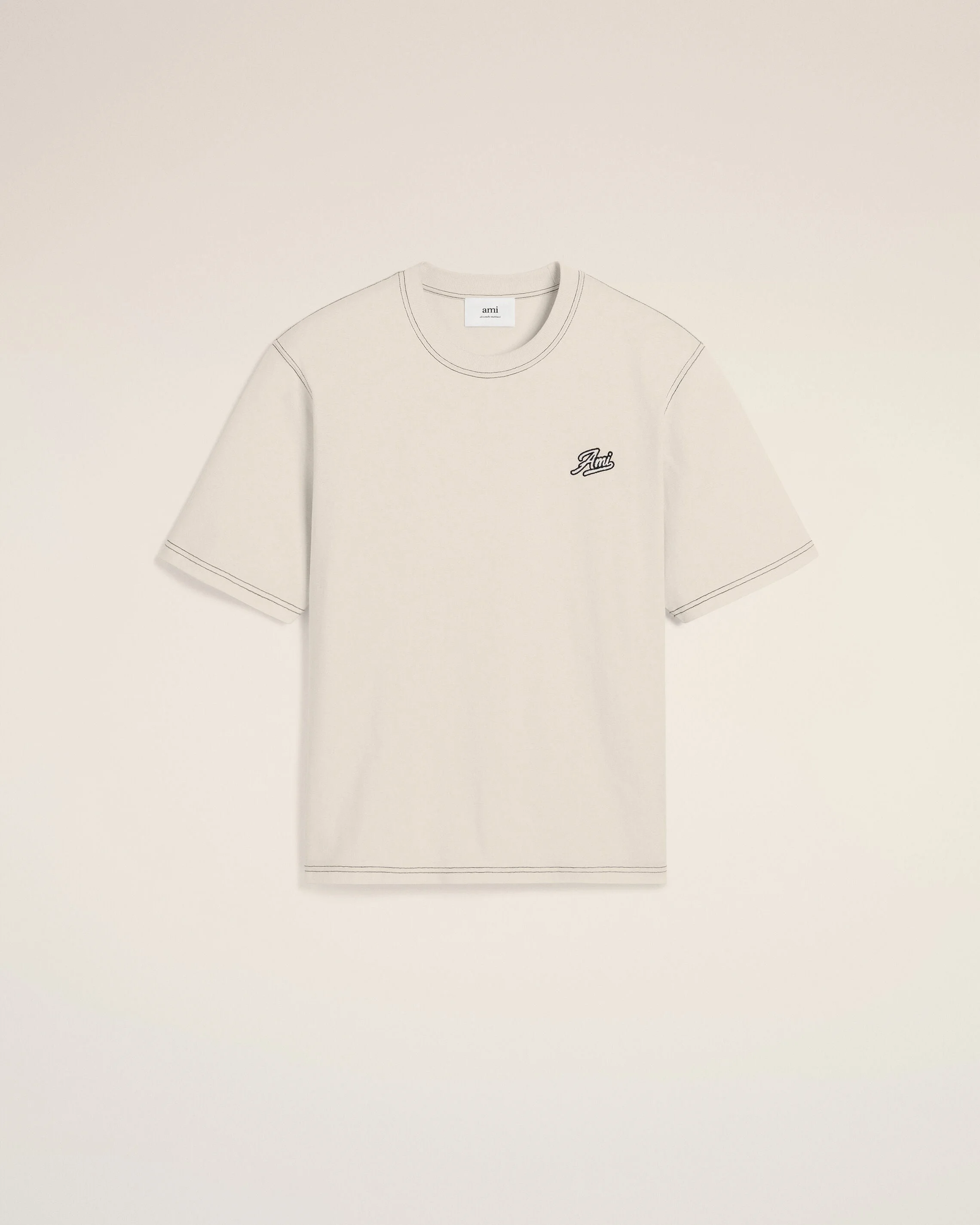 BEIGE COTTON AMI SIGNATURE T-SHIRT