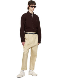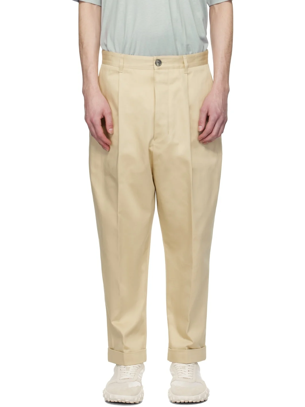 Tapered cotton satin trousers. · Belt loops · Four-pocket styling · Button fly · Pleats at front · Creased legs · Rolled cuffs · Logo patch at back waistband · Horn hardware Supplier color: Ginger 100% cotton. Made in Portugal 251482M191010