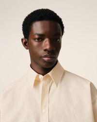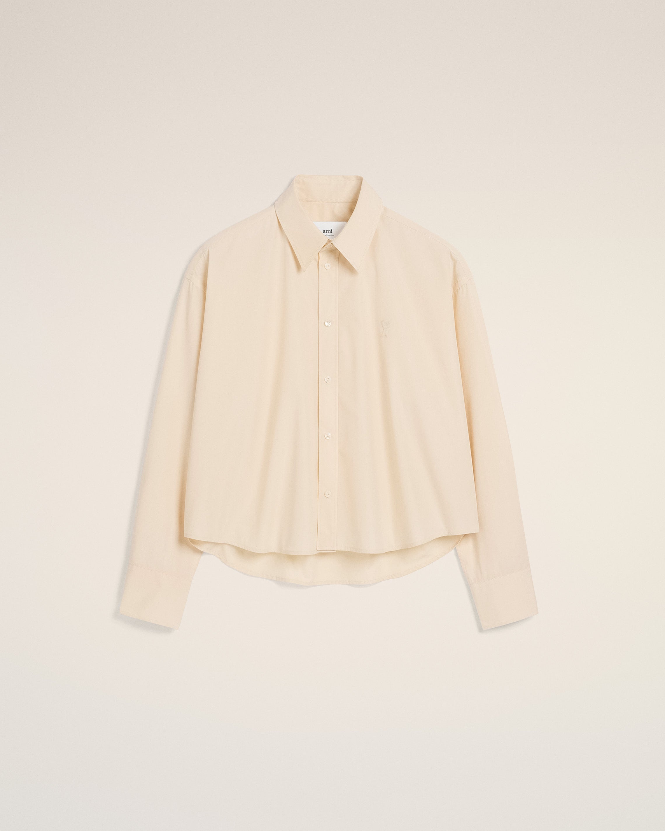 Cropped shirt in cotton poplin. Cropped oversized fit Unisex product 58 cm center back length (size XS) 66 cm center back length (size M) Tonal Ami de Coeur embroidery on the chest Classic collar Buttoned tab on front and cuffs Mother-of-pearl buttons Made in Poland (with love) REF: USH120.CO0076.136 SIZE & FIT This style is unisex. For man, take your normal size. For woman, take one size down than your usual size. Man model is 1m86 / 6'1" and is wearing a size M. Woman model is 1m81 / 5'11" and is wearing a size XS. COMPOSITION & CARE GUIDE 100% Cotton Chlorine prohibited Do not tumble dry Dry clean gentle Cool iron Machine wash at 30°C gentle