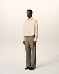 BEIGE COTTON CROPPED OVERSIZED SHIRT