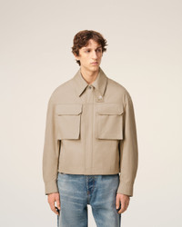 Worker jacket in cotton gabardine. Unisex product Nickel metal zipper with leather puller Front and pockets with invisible snap buttons Adjustable cuffs with snap buttons Adjustable back tabs with snap buttons "ami alexandre mattiussi" leather label on the chest 60 cm center back length (size XS) 62 cm center back length (size M) Made in Romania (with love) REF: UJK846.CO0132.229 SIZE & FIT This style is unisex. For man, take your normal size. For woman, take one size down than your usual size. Man model is 186 cm / 6"1 and is wearing a size M. Woman model is 178 cm / 5"10 and is wearing a size XS. COMPOSITION & CARE GUIDE Main Material : 100% Cotton Pocket Lining : 65% Polyester 35% Cotton Do not wash Chlorine prohibited Do not tumble dry Cool iron Dry clean gentle