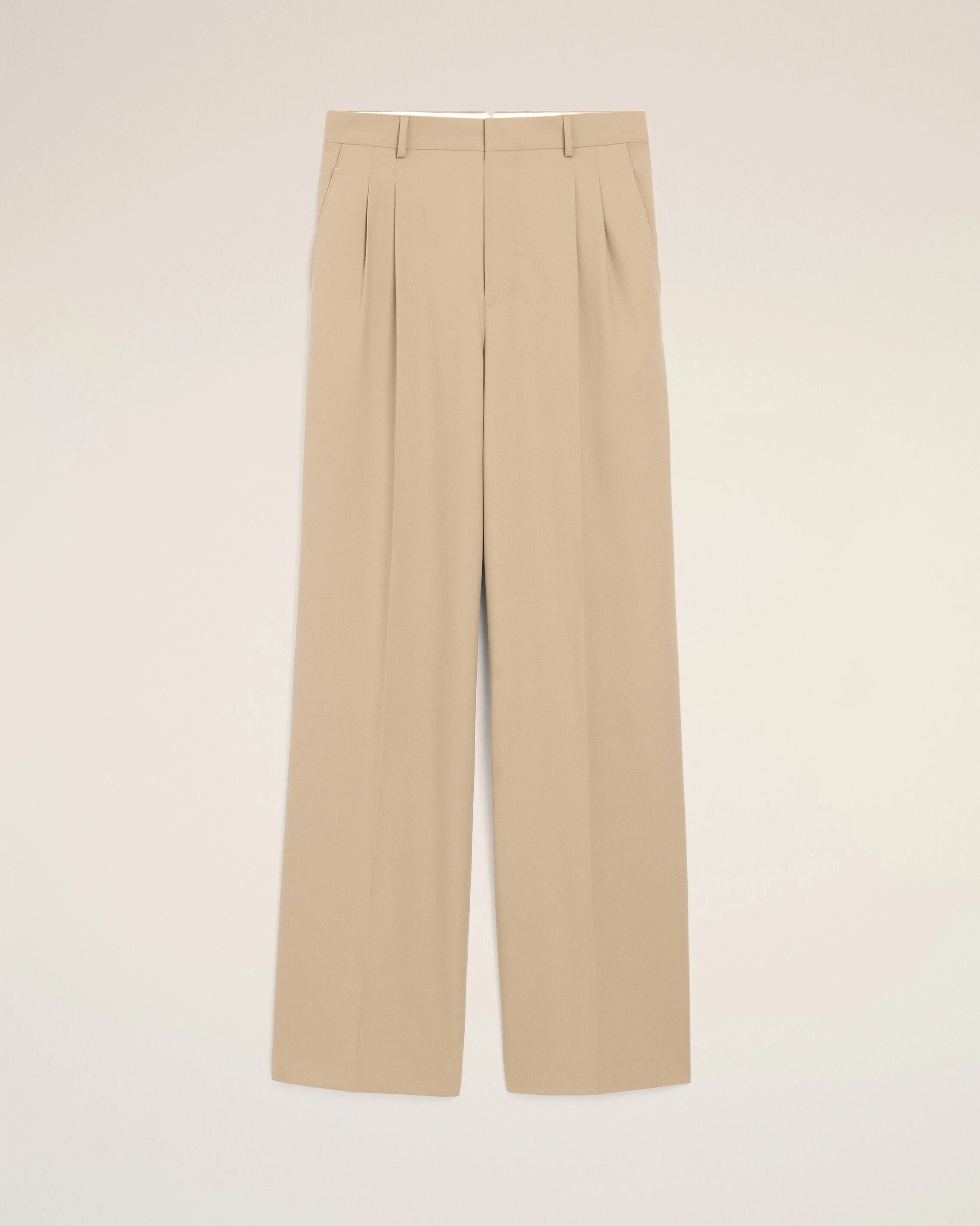 BEIGE NEW WOOL LOW WAIST WIDE TROUSERS