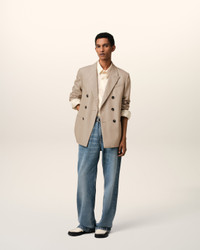 BEIGE WOOL BACK SLIT DOUBLE BREASTED JACKET