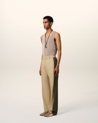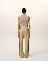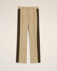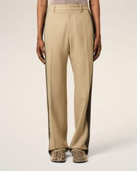 BEIGE WOOL CONTRASTED BAND STRAIGHT TROUSERS